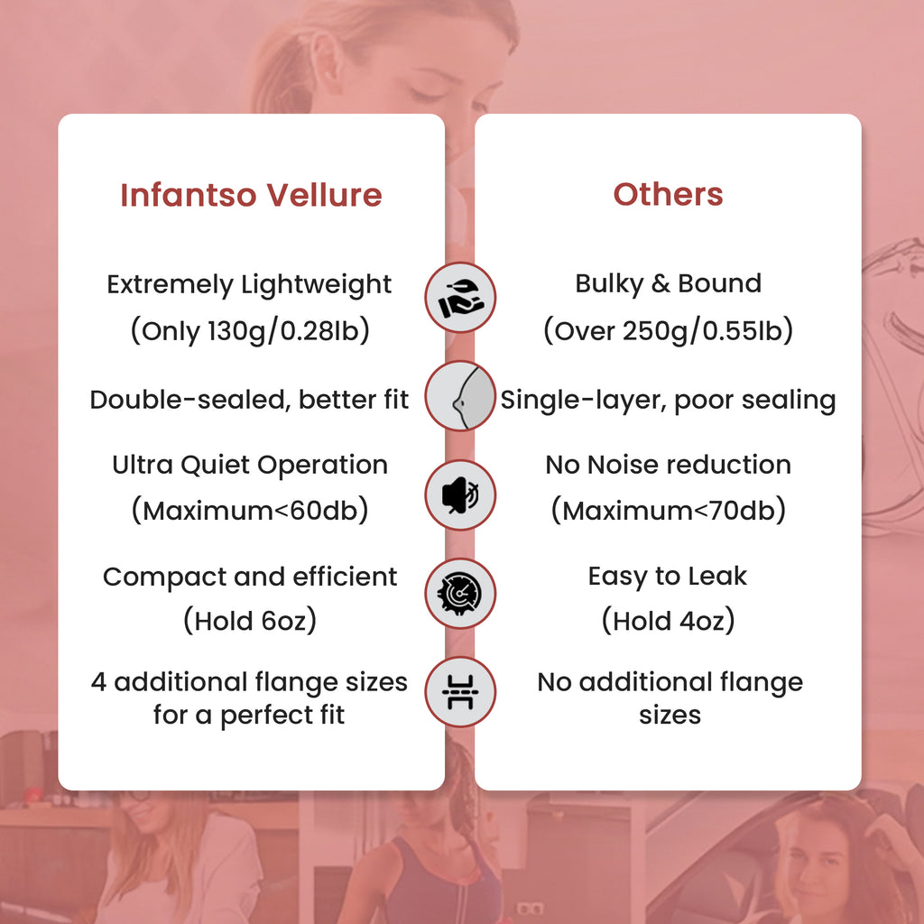 Designed for modern multitasking moms, the Infantso Vellure Breast Pump combines cutting-edge technology with comfort-focused engineering. This wearable, hands-free double pump offers hospital-grade suction (280mmHg), ultra-quiet operation (<60db), and a leak-proof double-seal flange system to ensure every drop of milk is collected hygienically and efficiently.