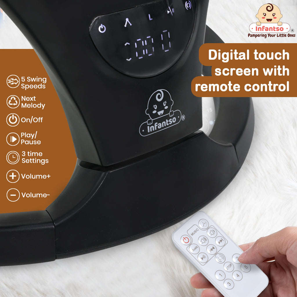 Soothe your baby effortlessly with the Infantso Automatic Baby Swing, designed to combine comfort, safety, and smart technology. With Bluetooth music streaming, remote-controlled operation, and five adjustable swing speeds, this cradle creates a calming environment for your little one.